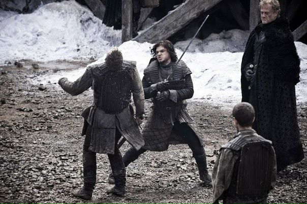 "Слушайте мою клятву и будьте свидетелями моего обета! Ночь собирается, и начинается мой дозор. Он не окончится до самой моей смерти. Я не возьму себе ни жены, ни земель, не буду отцом детям. Я не надену корону и не буду добиваться славы. Я буду жить и умру на своем посту. Я — меч во тьме; я — дозорный на Стене; я — огонь, который разгоняет холод; я — свет, который приносит рассвет; я — рог, который будит спящих; я — щит, который охраняет царство людей. Я отдаю свою жизнь и честь Ночному Дозору среди этой ночи и всех, которые грядут после нее."